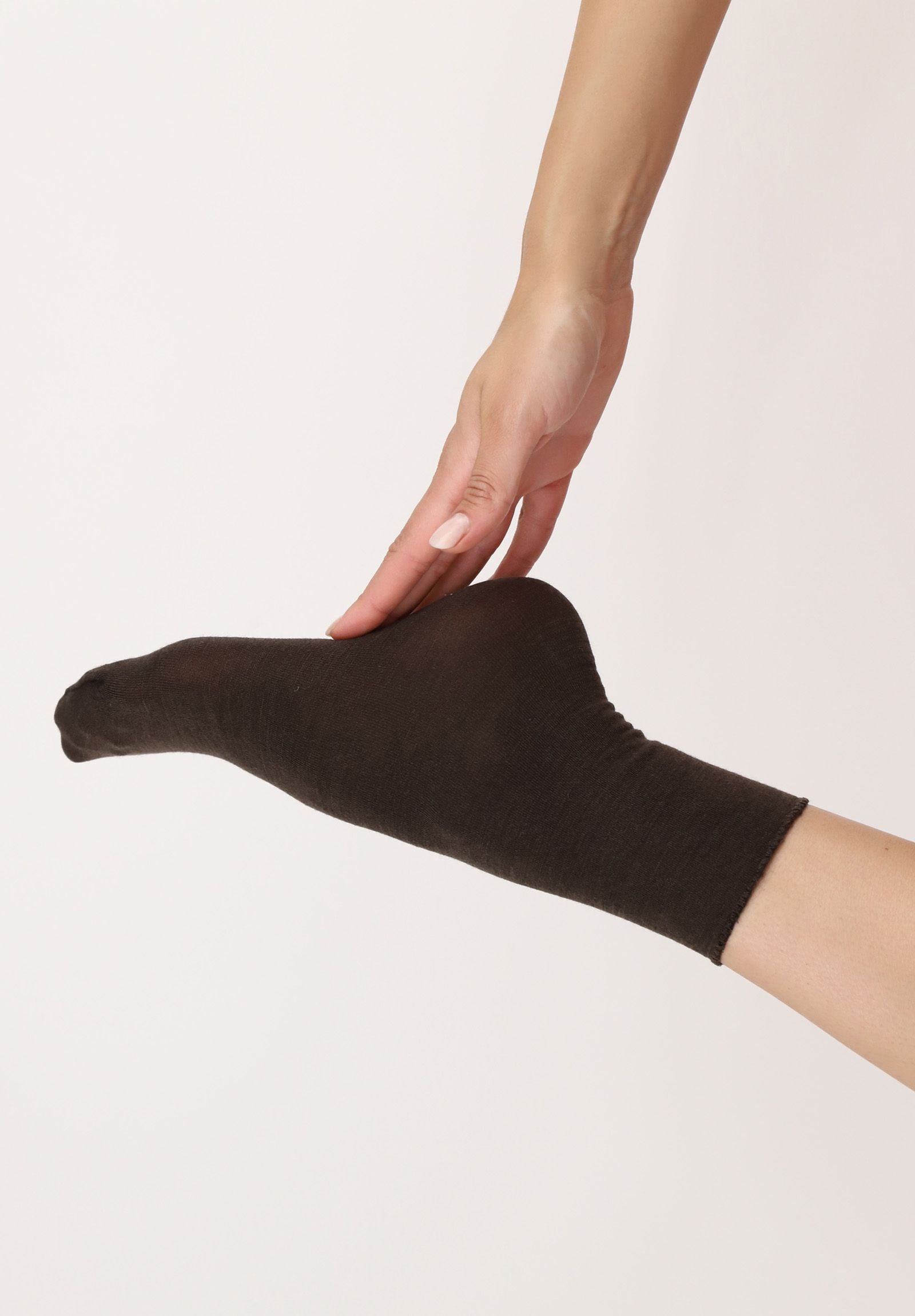 Calzino corto e caldo in lana pregiata. La lana impiegata nel calzino Nives subisce il trattamento superwash che la rende soffice e leggera allo stesso tempo e fissa il colore nelle fibre per un aspetto brillante anche dopo numerosi lavaggi. Il polsino è a taglio vivo, cioè non ha un bordo, ed è adatto a chi non ama elastici in caviglia. L’intero calzino è tessuto con tecnica 3D: la maglia, elastica sia in trazione verticale che orizzontale, si distribuisce in modo uniforme e abbraccia il piede per un extra confort.