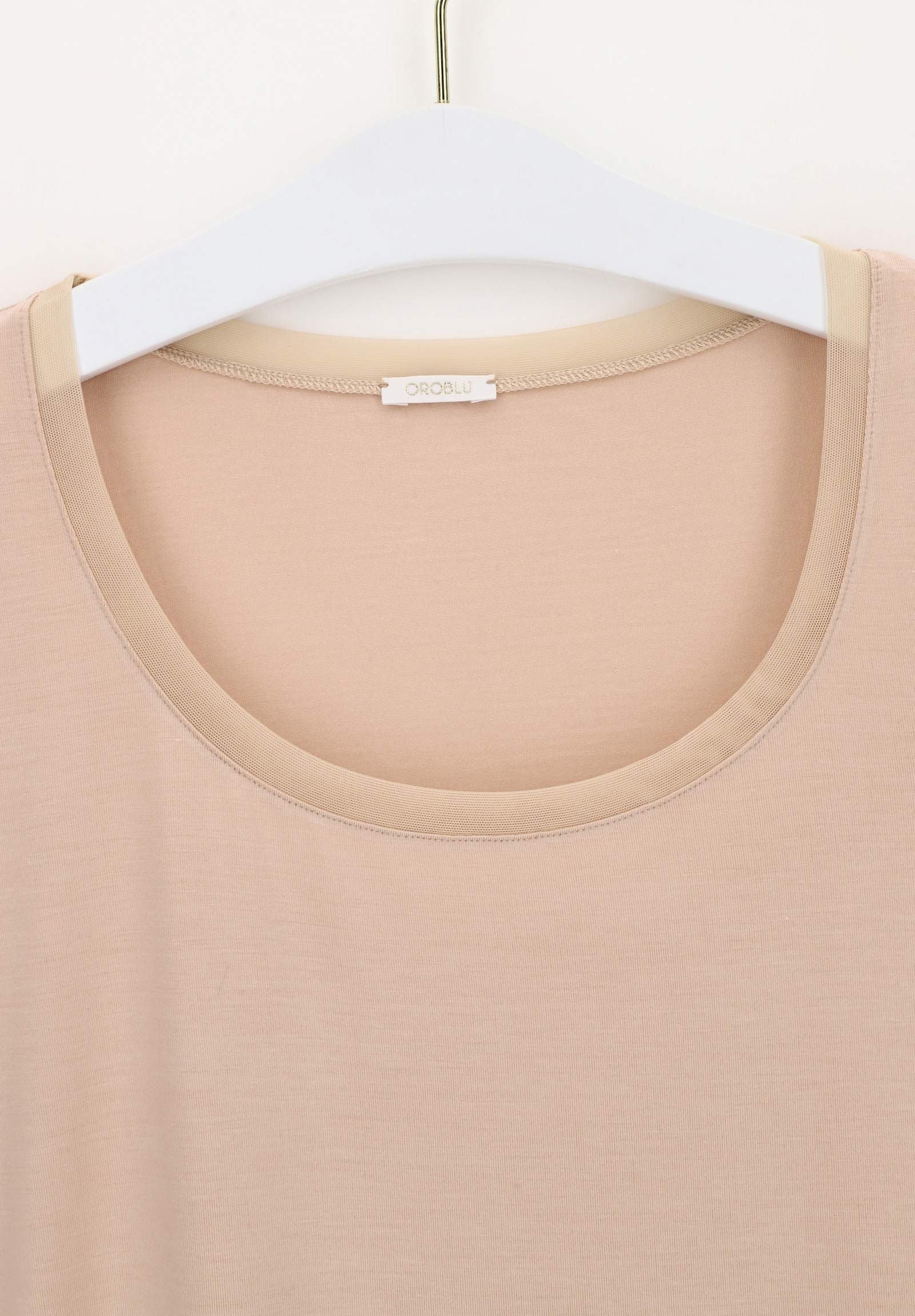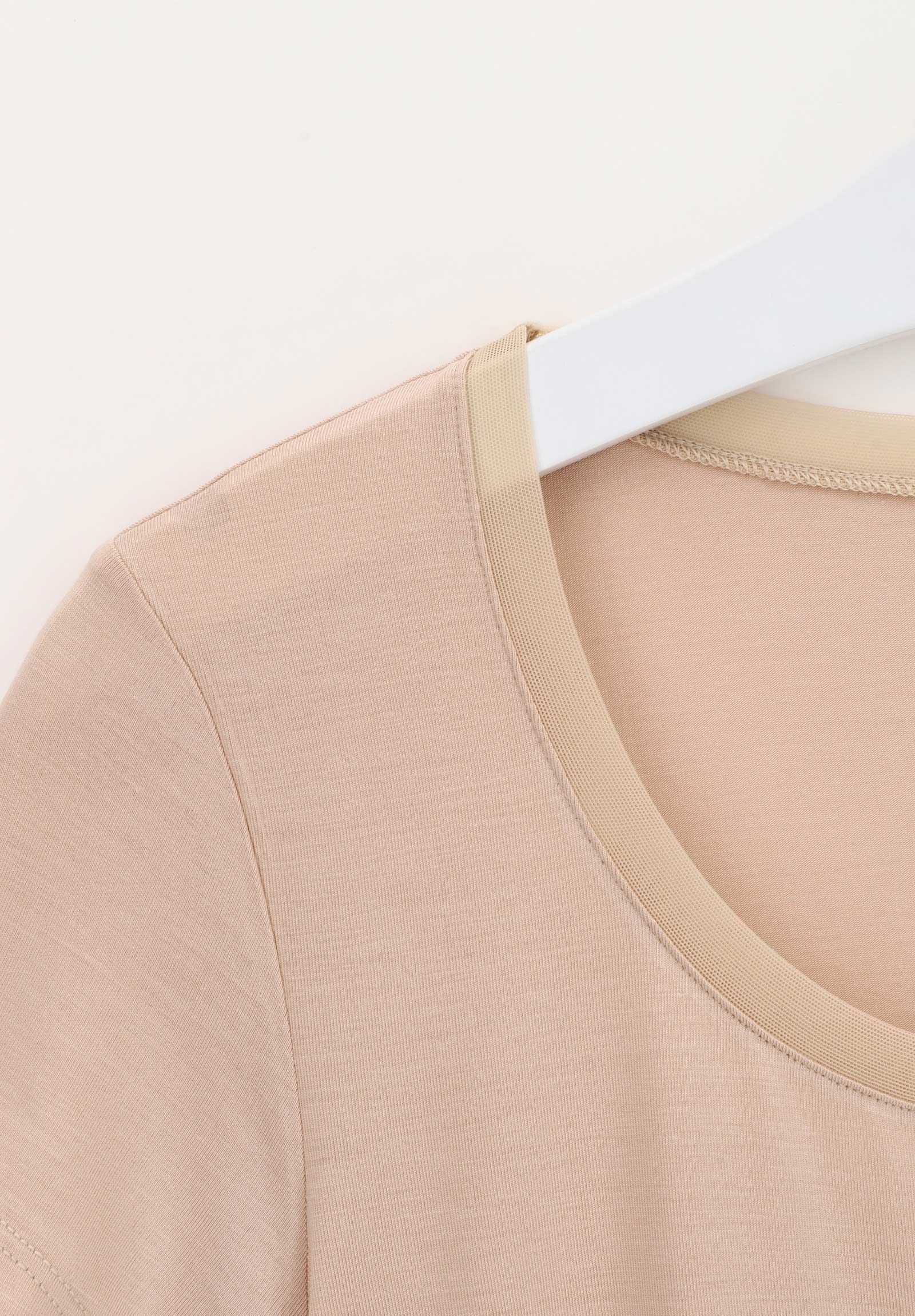 Perfetta sia come intimo che come capo esternabile, questa maglia è caratterizzata da un scollo profondo e manica corta. E’ realizzata in un leggero e morbido micromodal elasticizzato abbinato al tulle elasticizzato sullo scollo. La vestibilità è aderente.