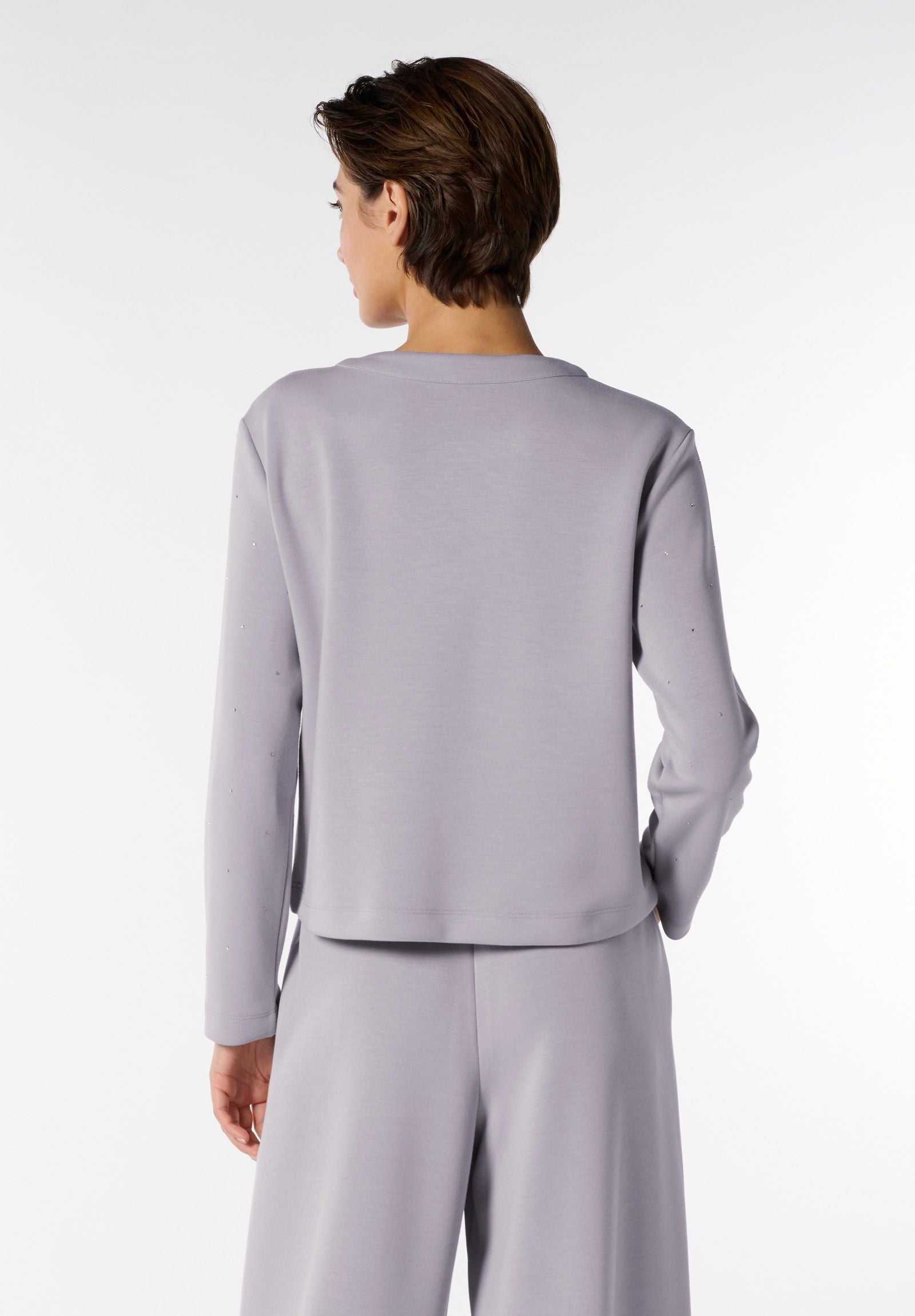 Dal design essenziale e contemporaneo, questa maglia a manica lunga con scollo tondo è realizzata in un morbido tessuto tecnico che assicura comfort e libertà di movimento. Gli strass in tinta aggiungono un dettaglio elegante e sfizioso, discreto ma d’effetto. Perfetta per accompagnarti con stile nelle attività quotidiane o nei momenti più dinamici, come viaggi e spostamenti, senza rinunciare ad un tocco di raffinatezza. Ideale in coordinato con i pantaloni della stessa serie, per un total look pratico ma ricercato.