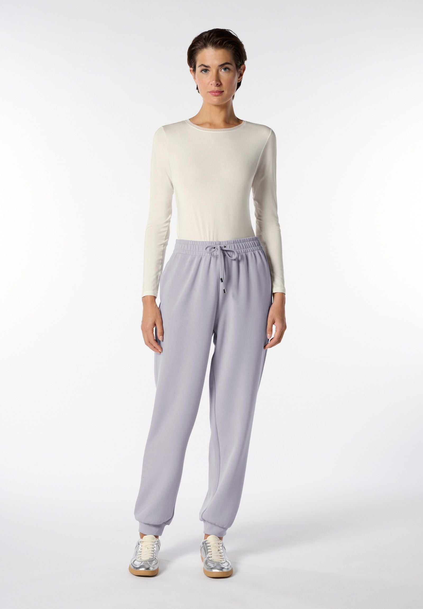 Comfort e stile informale si incontrano in questi jogger in morbido tessuto tecnico. Caratterizzati da elastico e coulisse in vita per una vestibilità personalizzabile, presentano tasche sui fianchi e morbidi polsini elasticizzati al fondo che donano un look curato e contemporaneo. Perfetti per accompagnarti nelle giornate più dinamiche, si abbinano idealmente alle parti alte della stessa serie per un total look pratico e raffinato.